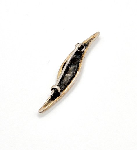 Wykonana ze srebra niewielka broszka w abstrakcyjnym kształcie, ciekawie zdobiona. Broszka ma już swoje lata (spokojnie z 40), srebro pociemniało.