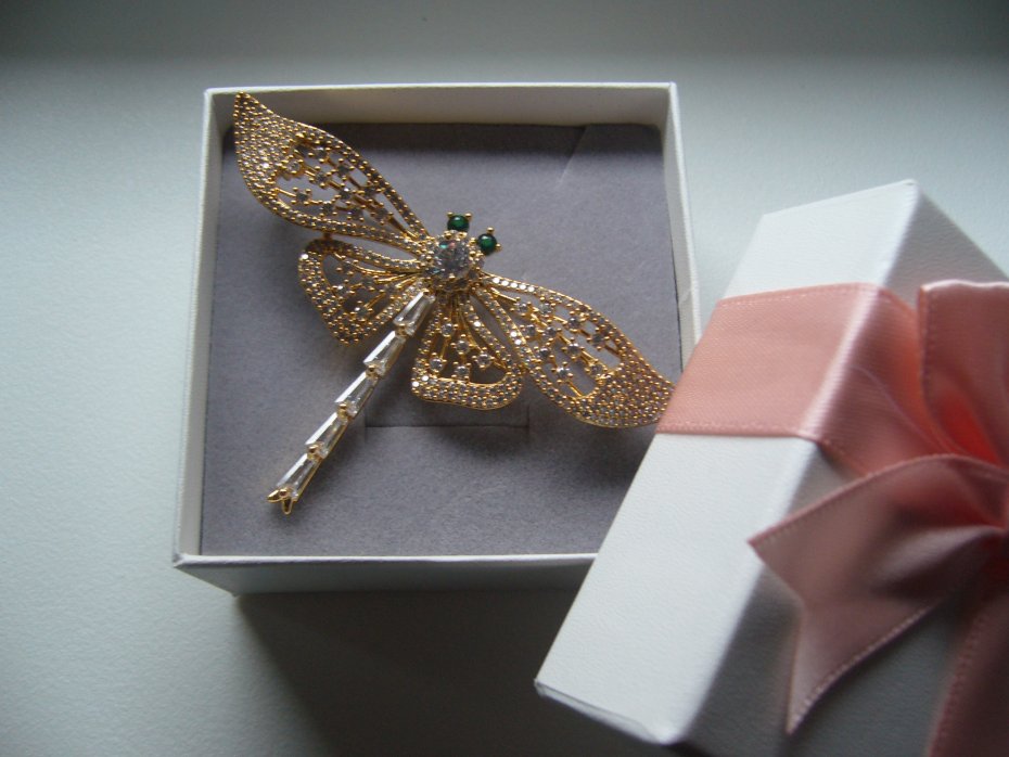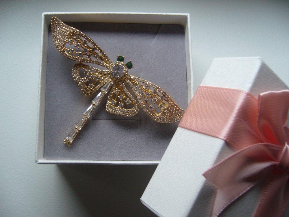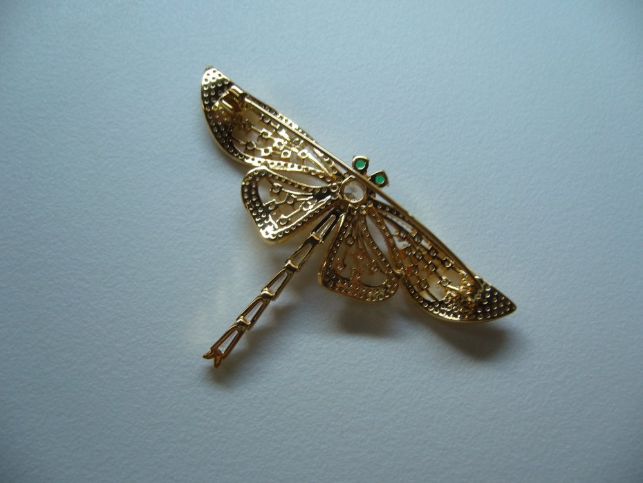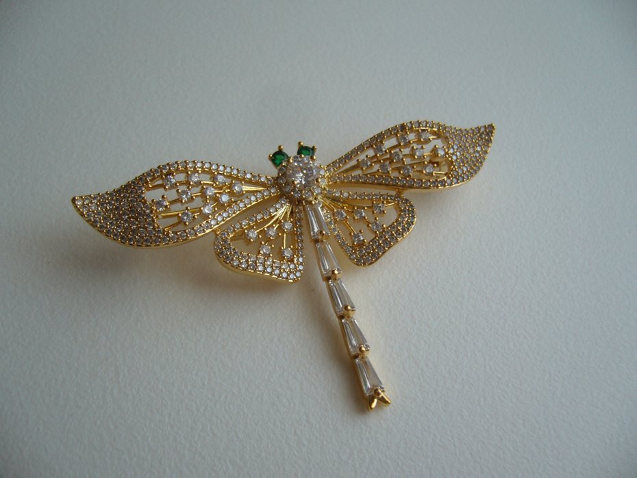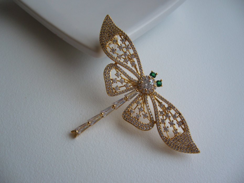 PIĘKNA POZŁACANA BROSZKA WAŻKA WYSADZANA SZKLANYMI CYRKONIAMI