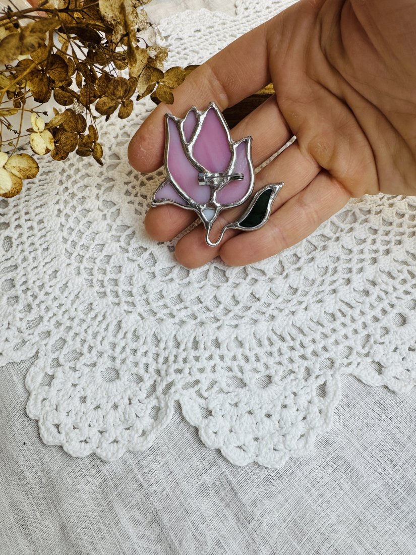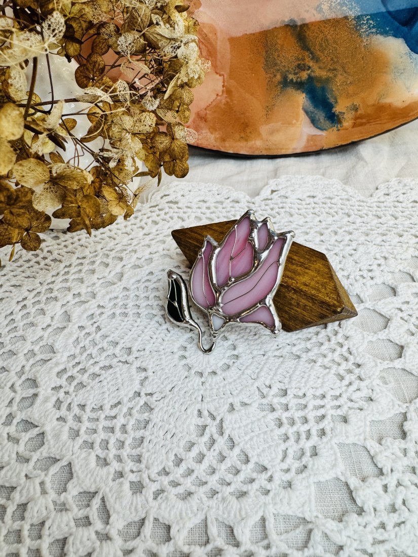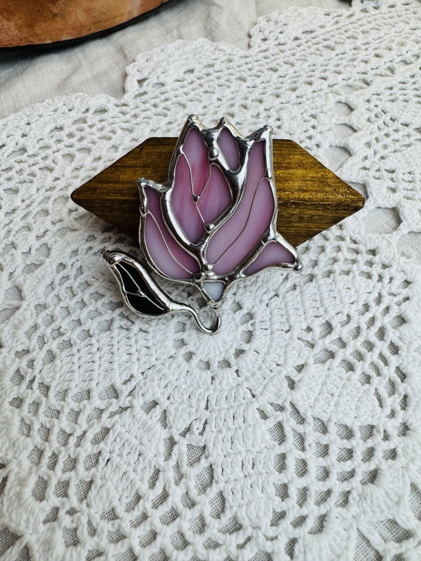 Tagi: #broszka kwiat, #magnolia, #prezent dla niej, #witrażowa broszka
