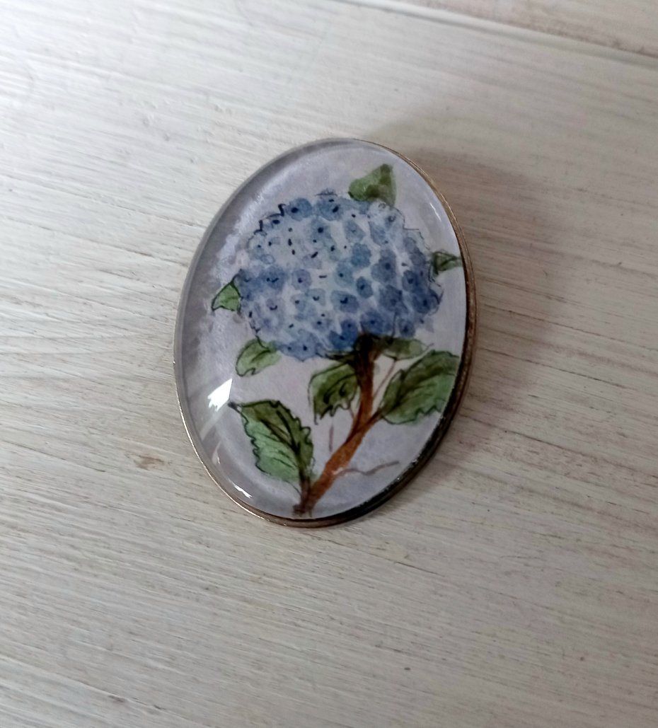 BROSZKA Z MINI AKWARELĄ MALOWANA HORTENSJA