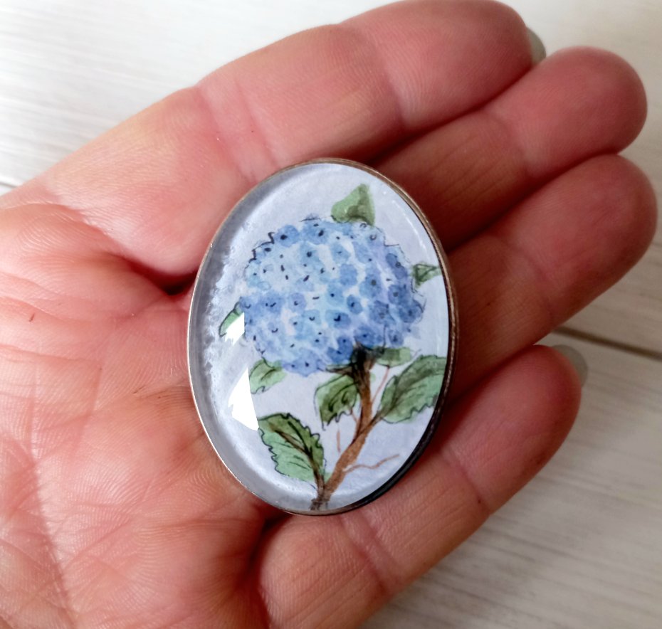 4.  > Broszka z mini akwarelą malowana hortensja (nr 7122922)