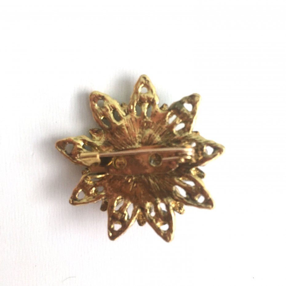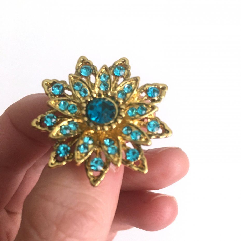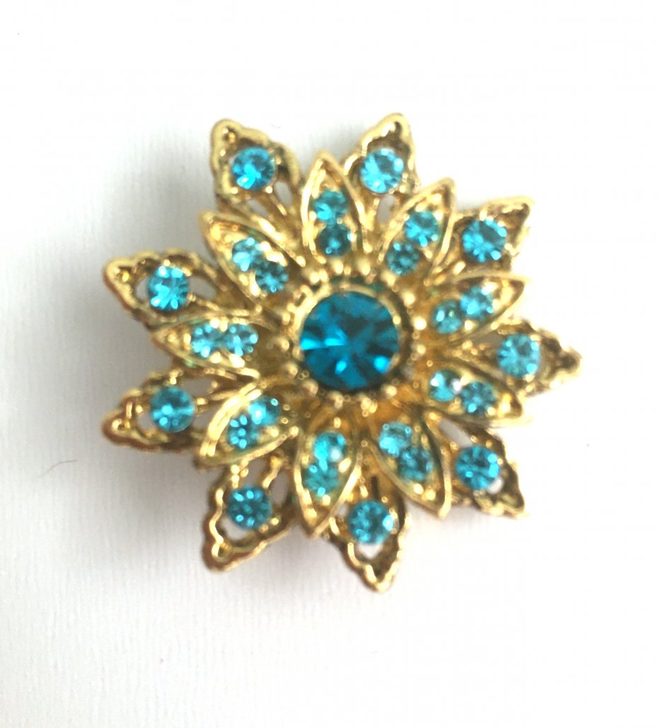 Niepowtarzalna, piękna, stylizowana na starą broszka z błękitnymi kryształkami w kolorze starego złota.