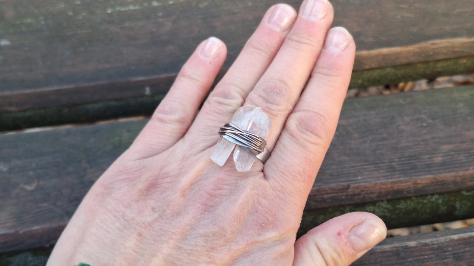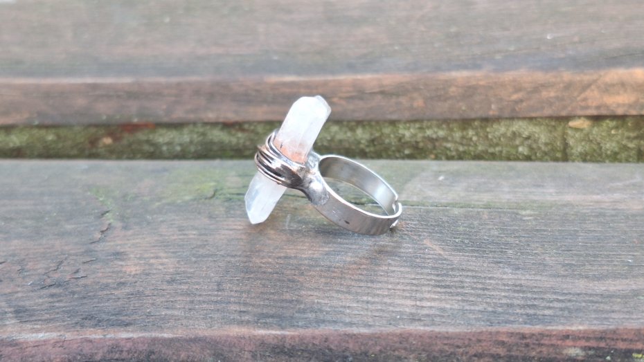Tagi: #kryształ górski, #pierścionek z kryształem, #regulowany pierścionek, #surowy pierścionek