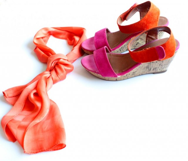 Zwiewny szal wytłaczany w kwadraty, w pięknym, brzoskwiniowym odcieniu pomarańczu. Materiał oceniam na jedwab.