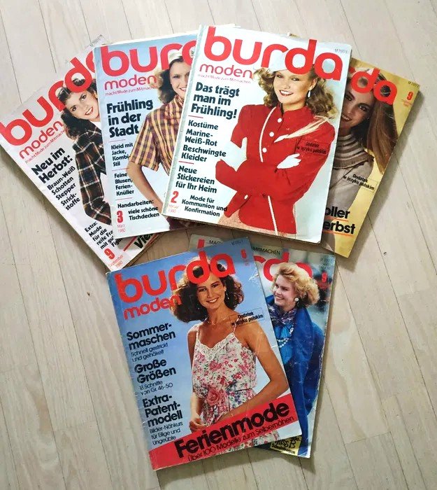 6 numerów niemieckiego magazynu modowego Burda. 4 egzemplarze z wykrojami i schematami :