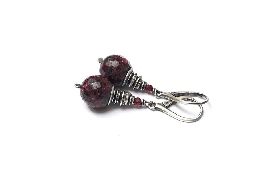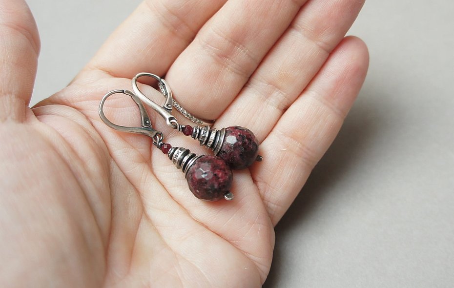 Kolczyki wykonane ze srebra [pr. 925] w połączeniu z unikatowymi fasetowanymi kuleczkami agatów [12mm]. Srebro oksydowane i przetarte. Całkowita długość kolczyków 4,8cm. Biżuteria ozdobnie zapakowana.