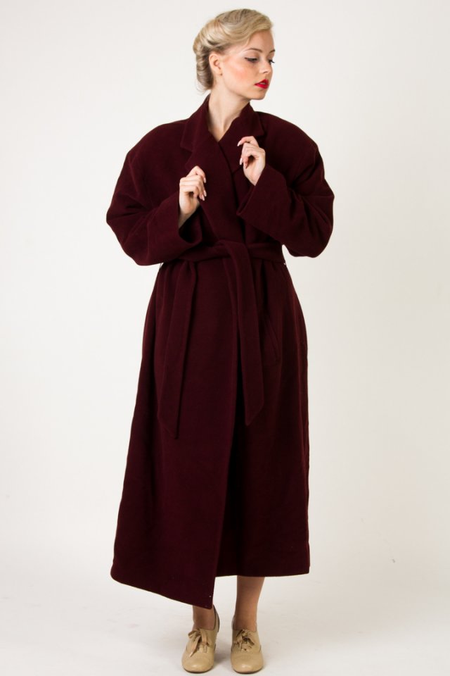 Świetny, minimalistyczny, ciepły płaszcz bez zapięcia - zakładany oraz przewiązany w talii paskiem, w pięknym kolorze. Posiada satynową podszewkę, rozcięcie z tyłu, kołnierz, kieszenie oraz szlufki. Ponadczasowy fason, uszyty z wełny z domieszką kaszmiru. Posłuży na pewno długie lata.
