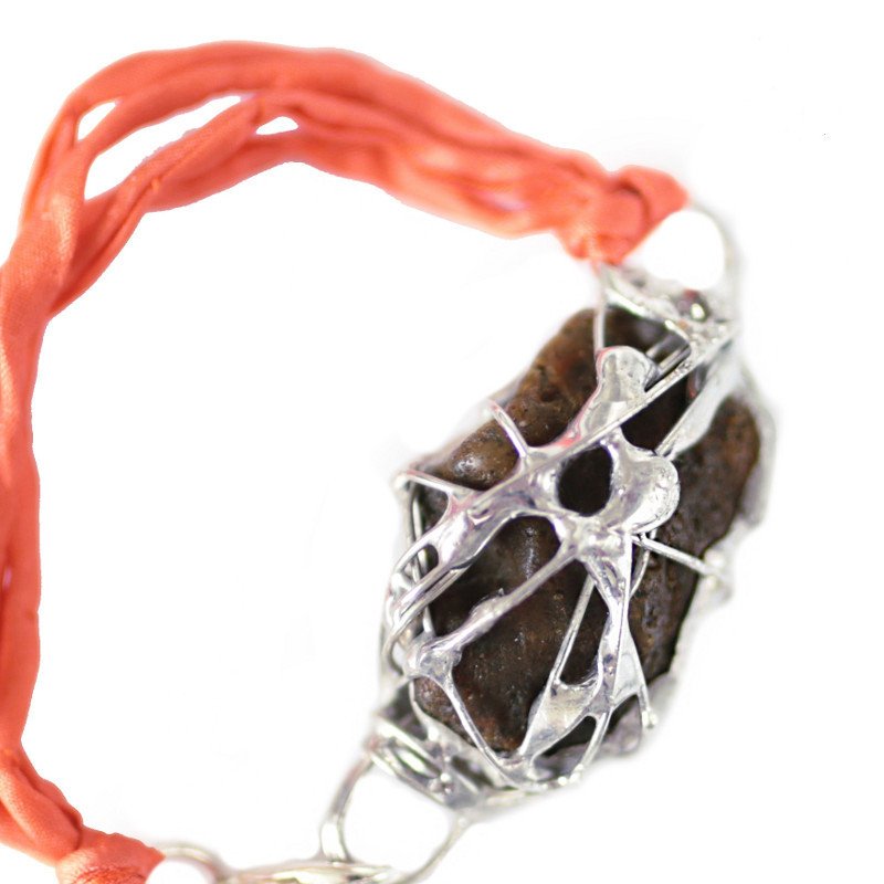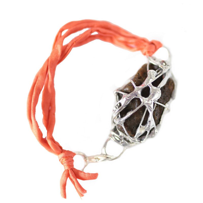 Autorska bransoletka, wykonana z bursztynu i jedwabiu