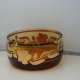 Piękna miseczka z kolorowego, grubego szkła, w kolorze bursztynu ze złotym ornamentem. Pięknie mieni się w słońcu. Przedmiot oryginalny, pochodzi z lat 80. XX w. Stan zachowania dobry, malutkie wykruszenia szkła na brzegu.