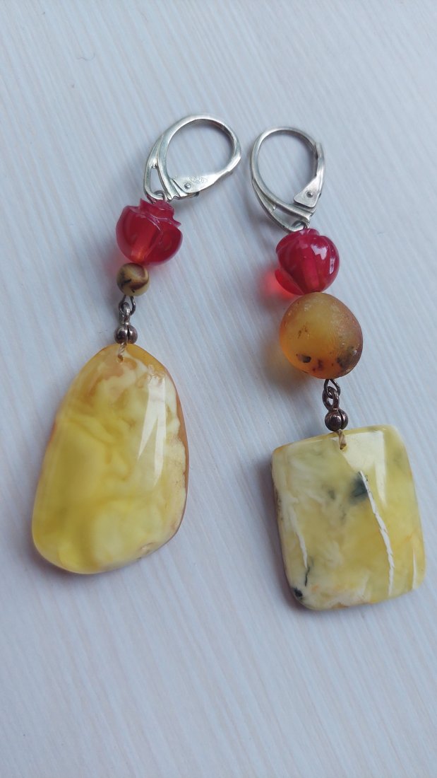 Tagi: #kolczyki asymetryczne, #kolczyki bursztynowe, #oryginalne kolczyki wiszące, #srebro 925