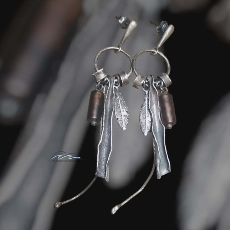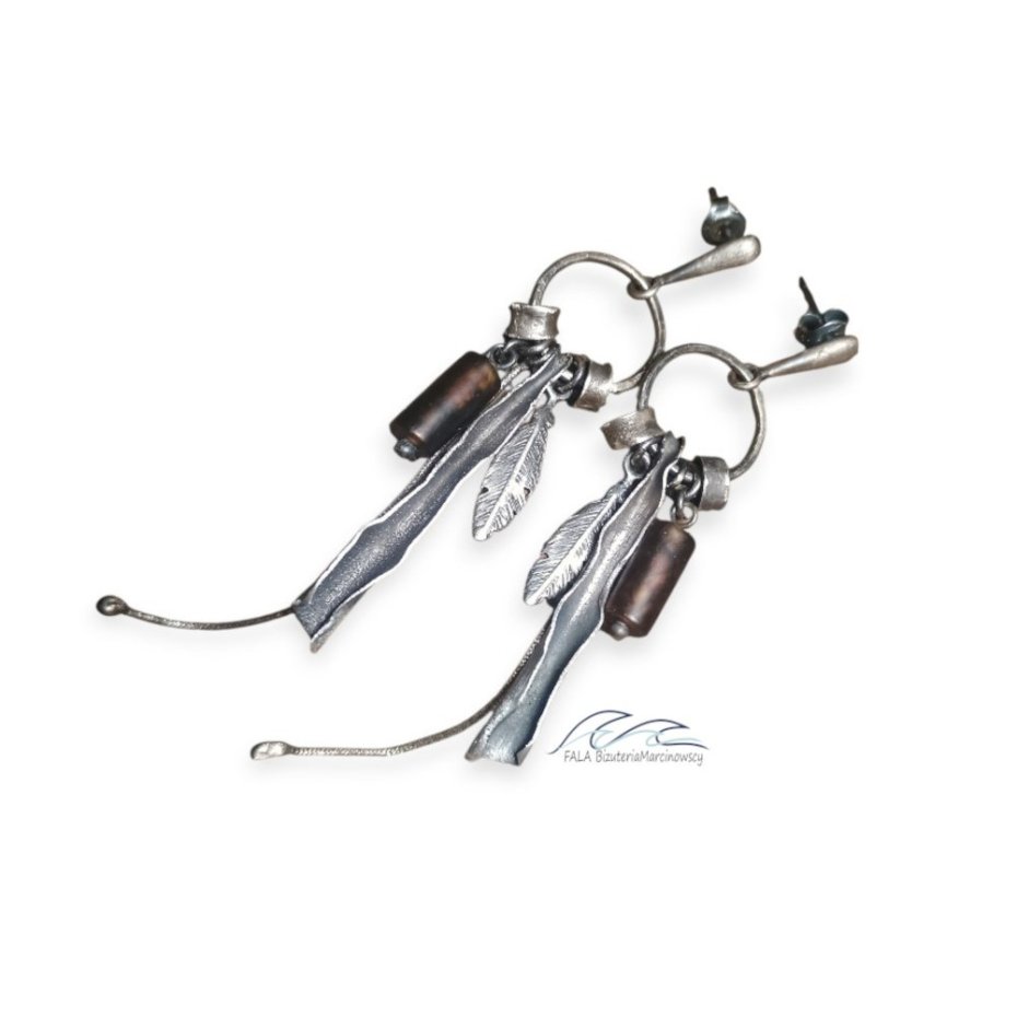 Kolczyki długie, lekkie i efektowne w stylu surowym.