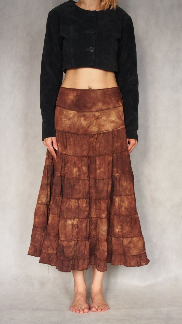 Świetna spódnica szyta z koła, świetnie barwiona, idealna do jesiennych etnicznych stylizacji. Zapinana na zamek