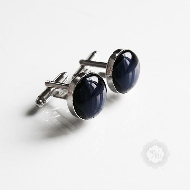 Spinki do mankietów ze szklanymi oczkami, wykonanymi ze szkła metodą fusingu.