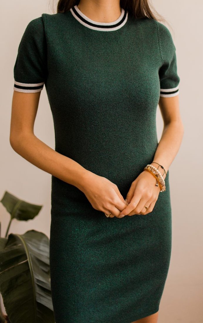 Dzianinowa, butelkowa sukienka z błyszczącą nitką.