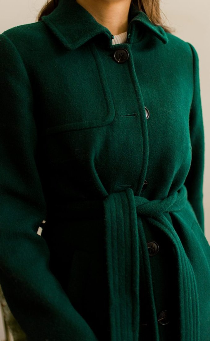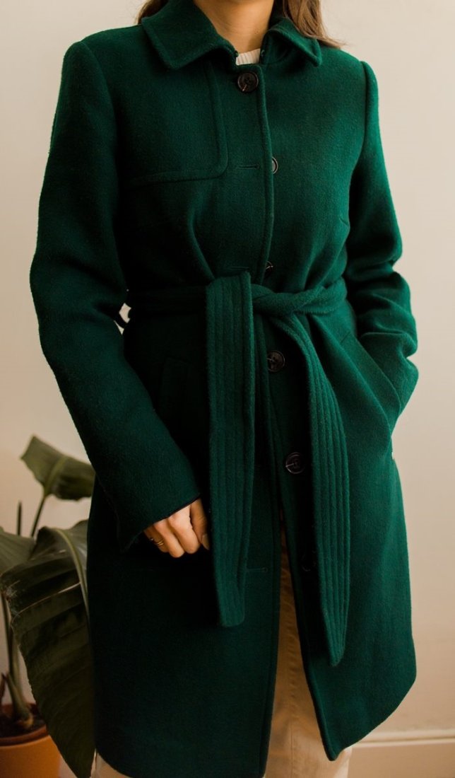 Butelkowy płaszcz z domieszką wełny.