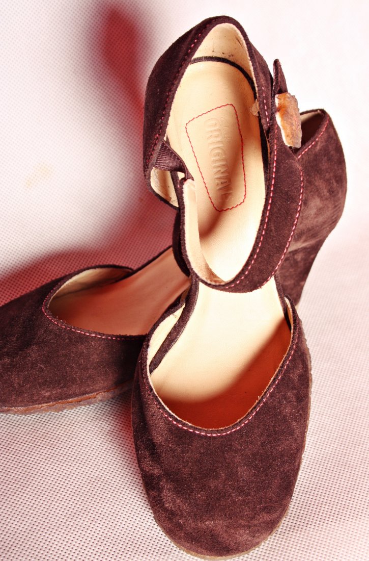 oryginalne buciki firmy CLARKS ORYGINALS z brazowego zamszu /nowe tylko przymierzane// w srodku buta metka z rozmiarem 3 i 1/2-dl.wkladki 24cm,cena 99,95 EUR