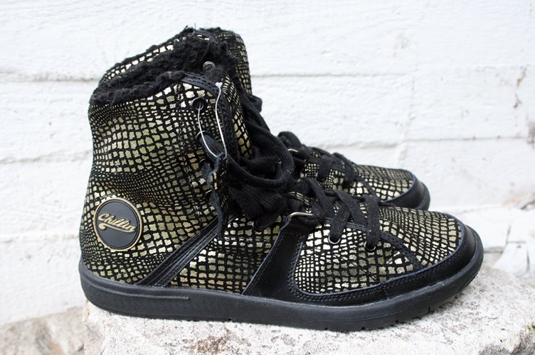 Czarne trampki w złotą panterkę,skorzane, firmy Cropp, rozmiar 36 -dł.wkladki 23,5cm