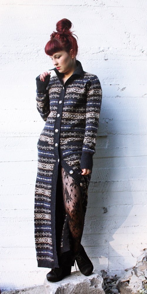 Piękny,długi,granatowy sweter we wzorki na CALY ROK.stan bardzo dobry.NOWYna szczupłą wysoką osobę,ok 170 cm wzrostu.Rozmiar M.osoba na ktorej wyk.zdj.nosi roozm.S,przy wzroscie 158cm.