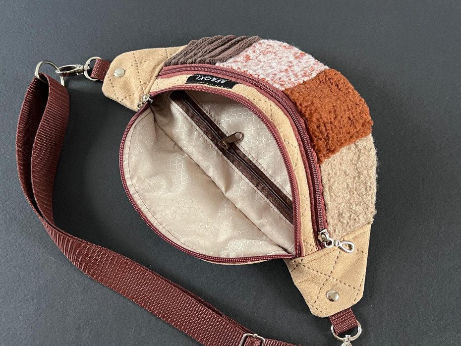 Wnętrze nerki wyłożone jest beżową, mocną podszewką z praktycznym kieszonkami. Dodatkowo nerka posiada kieszeń z przodu i z tyłu na zamek, aby wartościowe przedmioty zawsze były bezpieczne i pod ręką.