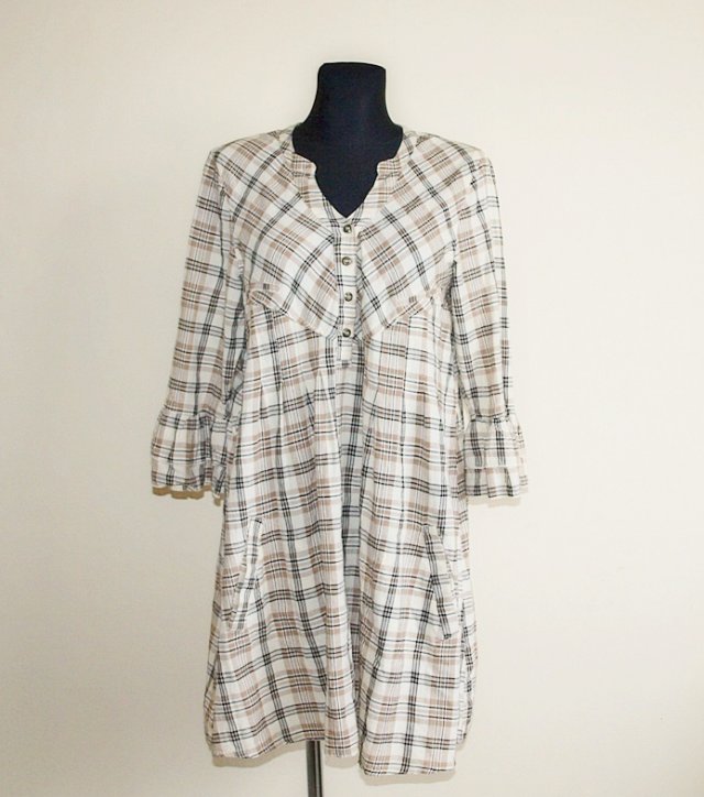 Letnia sukienka szwedzkiej marki Capri collection, prawdopodobnie nieużywana. Materiał wygląda jak cienka bawełna . Pod odcięciami z przodu i z tyłu płytkie zakładki. Szlufki na pasek, ale paska niestety nie ma. Na dole kieszonki. Rozmiar z metki 40. Sprzedawana bez dodatków. Podaję wymiary mierzone na płasko;