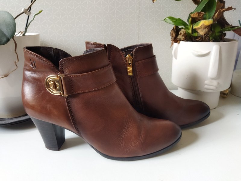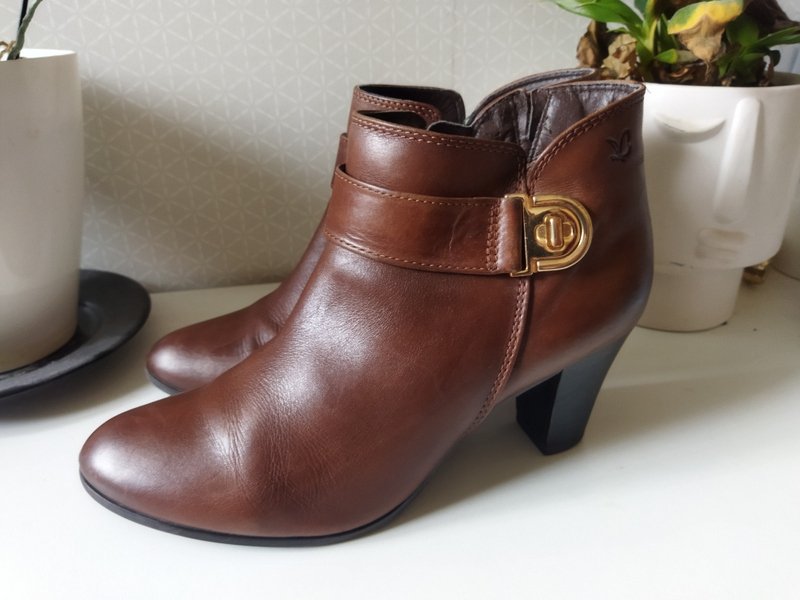 Wygodne botki z naturalnej skóry licowej w brązowym kolorze.