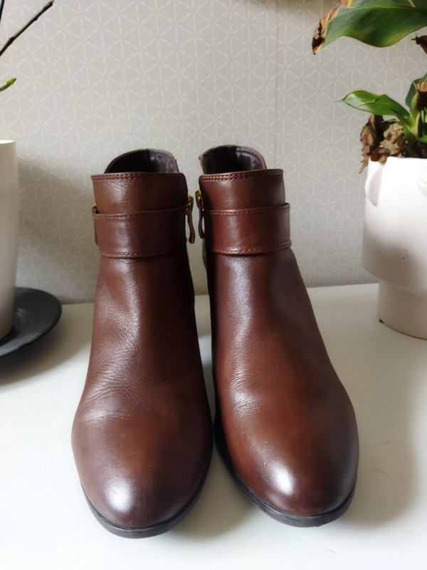 Wygodne botki z naturalnej skóry licowej w brązowym kolorze.