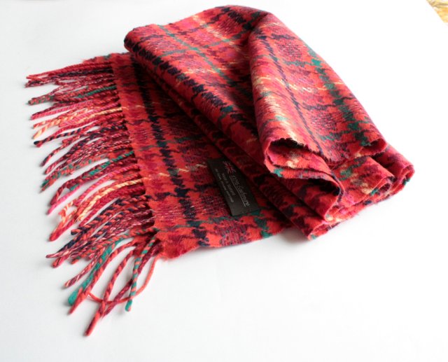 Przedstawiam Państwu luksusowy szal w 100% z kaszmiru. Produkcja szkocka. Szal jest miły, mięciutki w dotyku. Piękne, żywe kolory. Stan bez zarzutu.