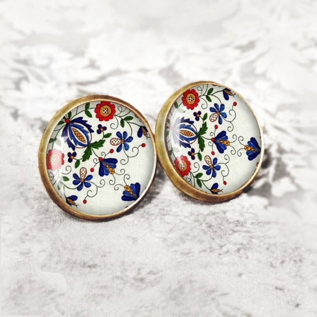 Kolczyki na sztyfcie (wkrętki) z oryginalną grafiką artystyczną, zatopioną pod wypukłym szkiełkiem, w oprawie w kolorze antycznego brązu. Grafika jest najwyższej jakości. Oryginalne kaboszony wykonane ręcznie według mojego projektu , z dbałością o każdy detal. Biżuteria hipoalergiczna, bez niklu i ołowiu.