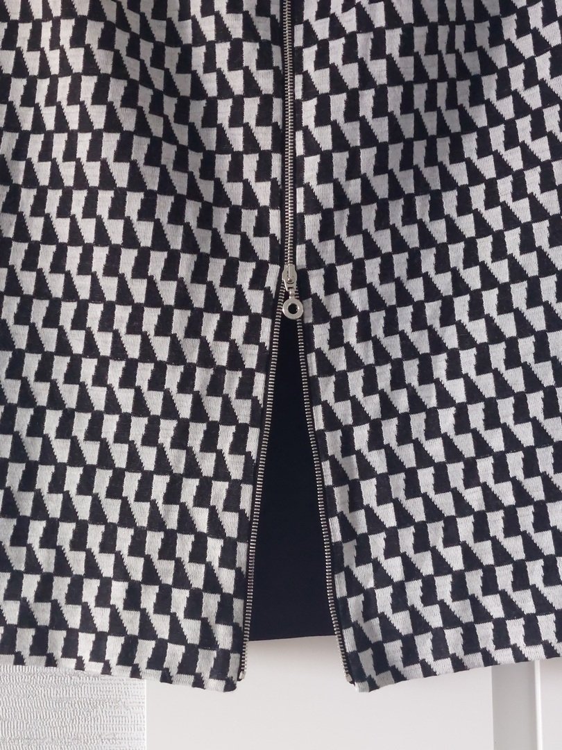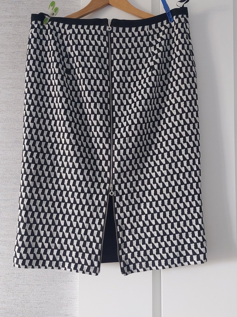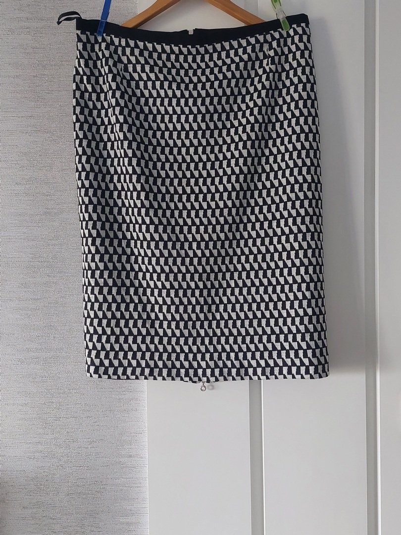 wąska spódnica z dzianiny ekskluzywnej polskiej marki Caterina leman. Materiał 32% wiskoza 20% poliakryl 40% poliester, 8% poliamid pod spodem podszewka. podwójny zamek z tyłu, można regulować rozcięcie na dole. kolor czarno-biały. Rozmiar z metki 42. proszę sprawdzić wymiary. stan bardzo dobry. Podaję wymiary mierzone na płasko;