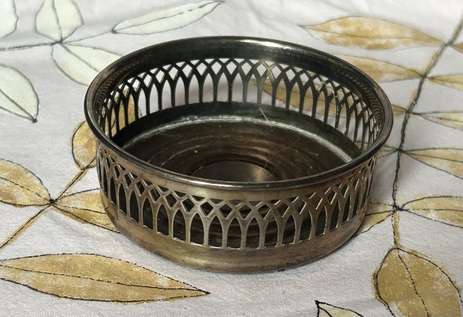 Tagi: #cavalier made in england, #plater srebrzony ażurowy, #podstawka pod butelkę, #sztuka stołu elegancja
