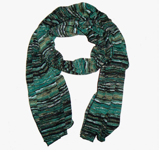 Szalik szwedzkiej marki Cecil w ciekawy wzór nieregularnego prążka. Cienki miękki materiał, lejący, na pewno viscoza.