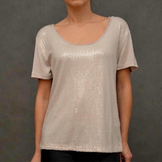 Bardzo fajna bluzeczka w kolorze nude z przezroczystymi cekinami z przodu. Marka H&M.