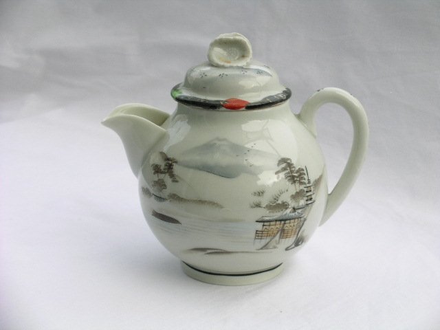 Artystyczny, stareńki dzbanek herbaciany - na wrzątek, autentycznie japoński, inspirowany wiekową tradycją zdobienia. Sygnowany. Porcelana w kolorze przygaszonej bielo-szarości, nie pierwszo-gatunkowa, solidna. Ręczna malatura o poetyckim spokoju, lekko fakturowa, artystyczna :) Bardzo wygodny rozmiar, przyjemne proporcje. Przykrywka z fantazyjnym uchwytem. Dół 6; szerokość 15,5; wysokość 15 cm. Przedmiot wart nowego życia, do ukochania i ożywienia herbacianą celebracją :)