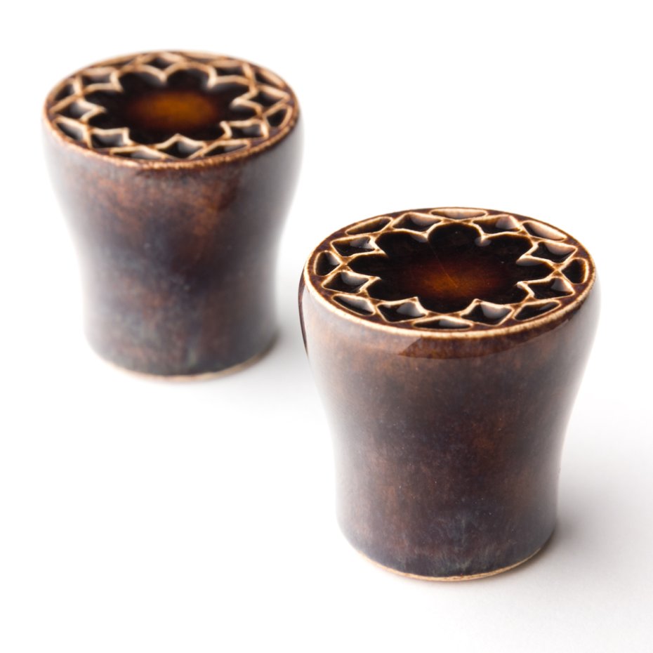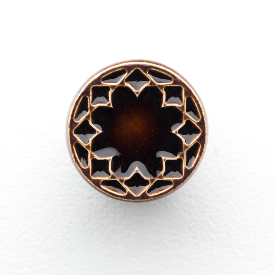 Ceramiczna gałka do mebli z lekko wypukłym ornamentem. Ręcznie wykonana z jasnej gliny, pokryta błyszczącym szkliwem. Twoje meble zyskają nowy, niepowtarzalny, jedyny w swoim rodzaju wygląd.
