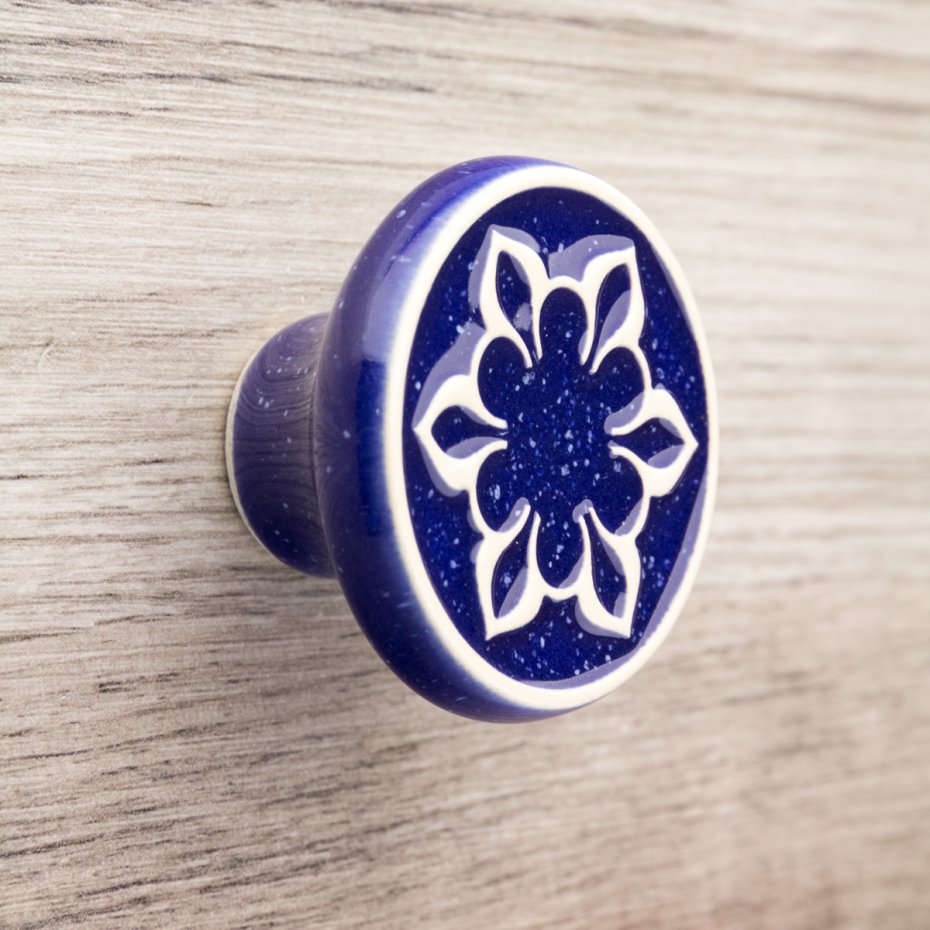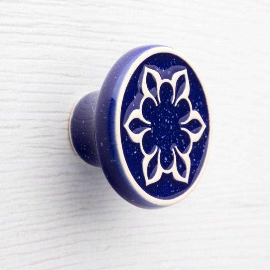 Ceramiczne gałki do mebli - ręcznie wykonane, ornamentowe, wg własnego projektu. Wykonane z jasnej gliny, pokryte błyszczącym szkliwem, wypalone dwukrotnie w wysokiej temperaturze. Twoje meble zyskają nowy, niepowtarzalny, jedyny w swoim rodzaju wygląd.