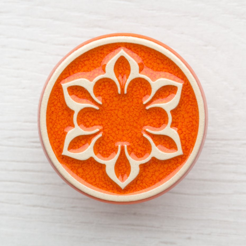 Kolor gałki pomarańczowy, ornament jasny.
