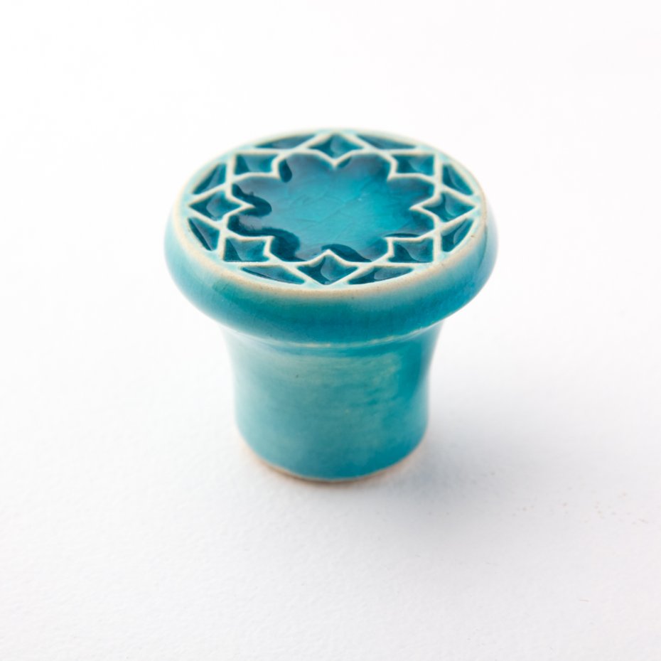 Ceramiczna gałka do mebli z lekko wypukłym ornamentem. Ręcznie wykonana z jasnej gliny, pokryta błyszczącym szkliwem. Twoje meble zyskają nowy, niepowtarzalny, jedyny w swoim rodzaju wygląd.