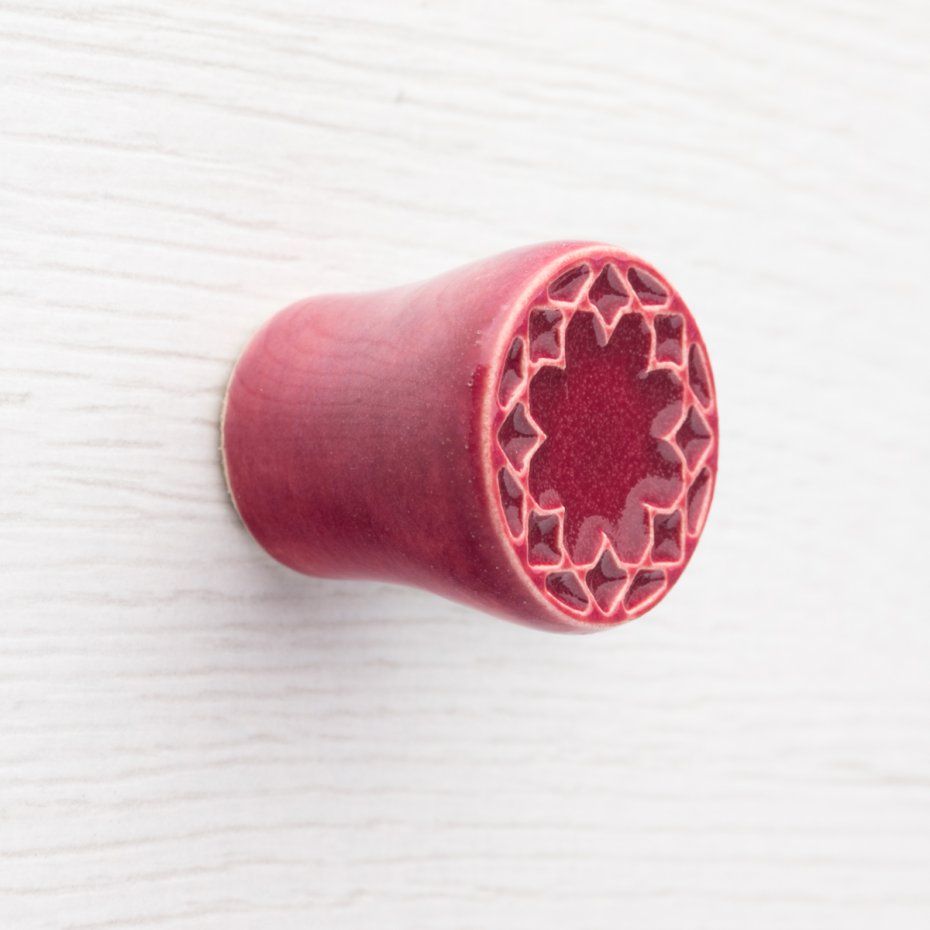 Ceramiczna gałka do mebli z lekko wypukłym ornamentem. Ręcznie wykonana z jasnej gliny, pokryta błyszczącym szkliwem. Twoje meble zyskają nowy, niepowtarzalny, jedyny w swoim rodzaju wygląd.