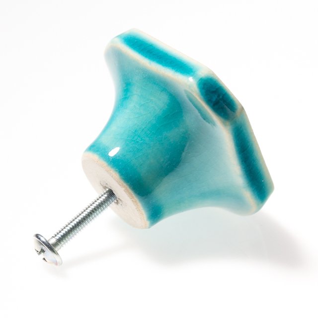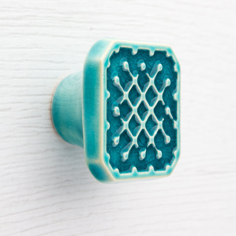Dwie ceramiczne gałki do mebli - ręcznie wykonane, ornamentowe, wg własnego projektu. Wykonane z jasnej gliny, pokryte błyszczącym szkliwem, dwukrotnie wypalane w wysokiej temperaturze.