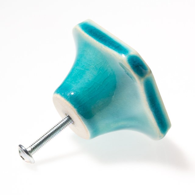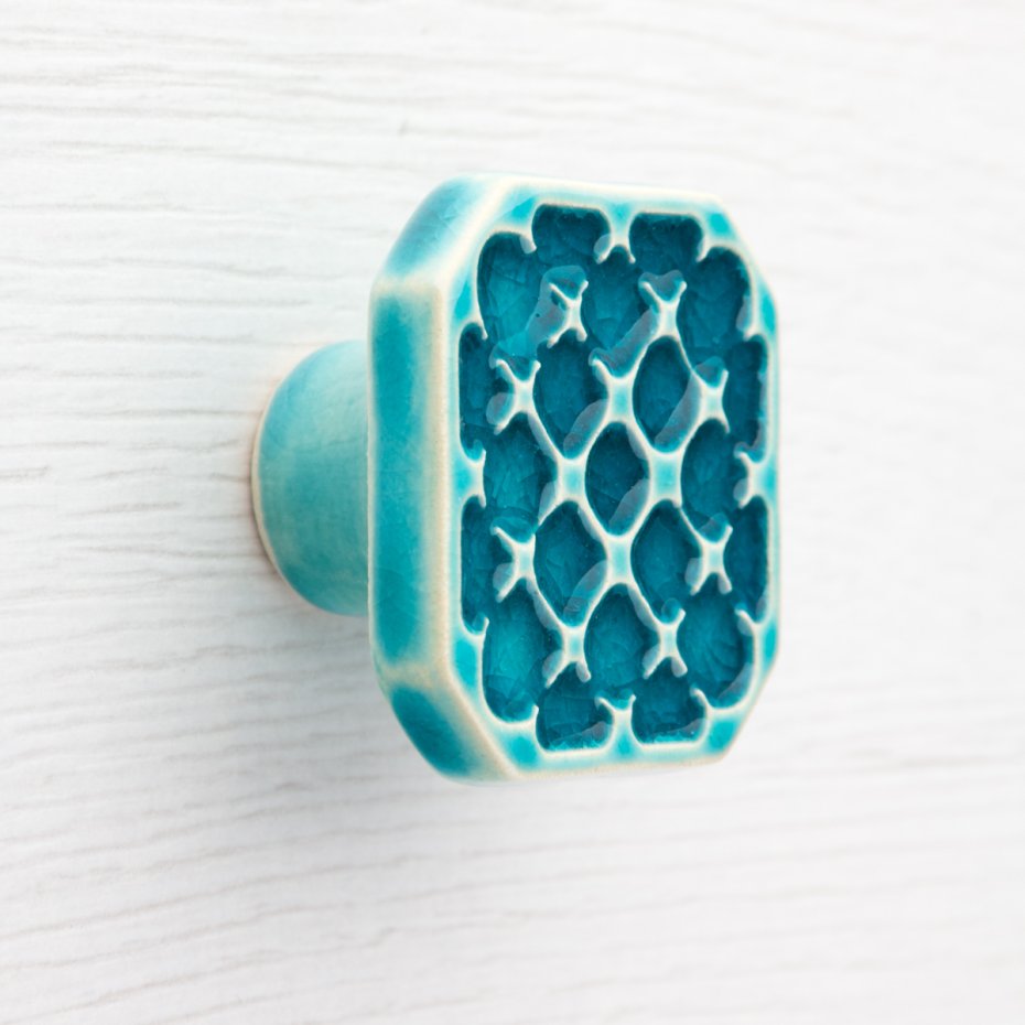 Dwie ceramiczne gałki do mebli - ręcznie wykonane, ornamentowe, wg własnego projektu. Wykonane z jasnej gliny, pokryte błyszczącym szkliwem, dwukrotnie wypalane w wysokiej temperaturze.