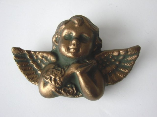 rustykalny aniołek do powieszenia, wykonany z masy gipsowej