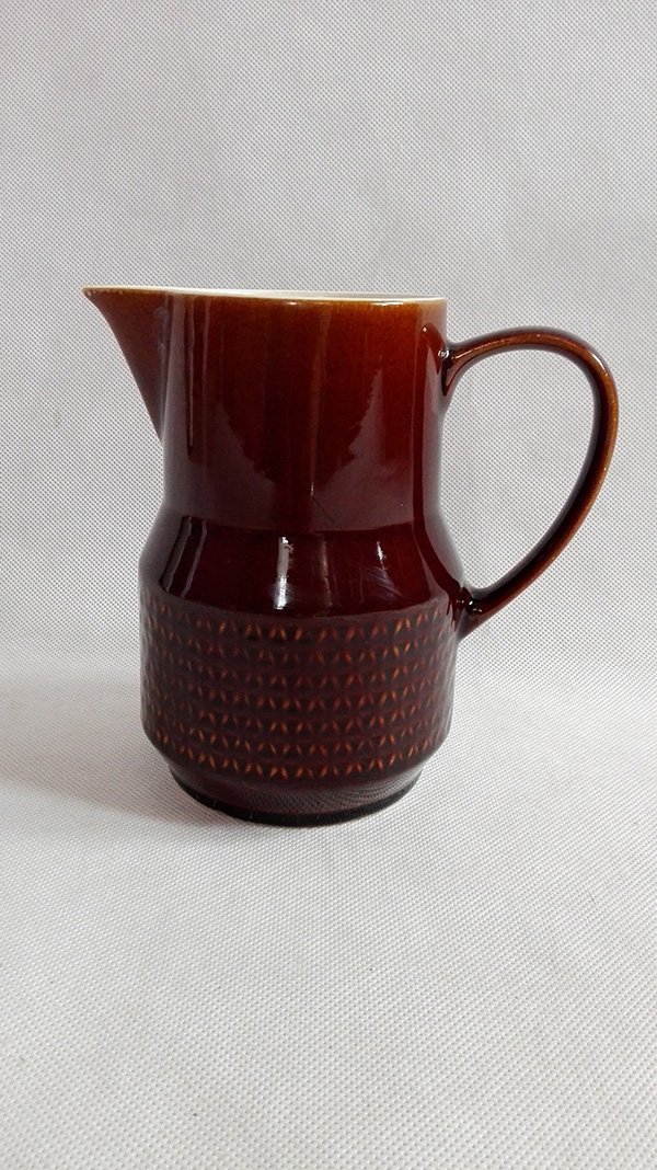 Dzbanek vintage[ lata 60-70-te], ceramika w kolorze brązowym, wew.biały.