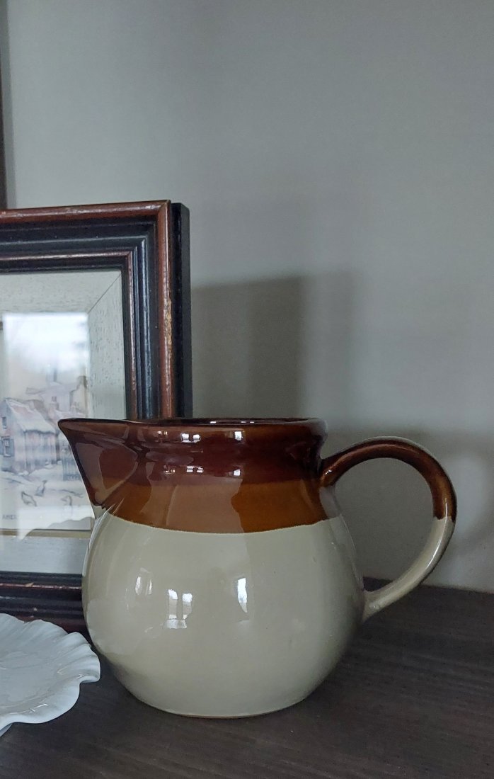Kamionkowy, szkliwiony wazon zachowany w bardzo dobrym stanie. Idealny dodatek do kuchni w stylu angielskim.