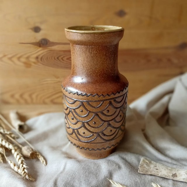 Ceramiczny wazon w neutralnych kolorach.
