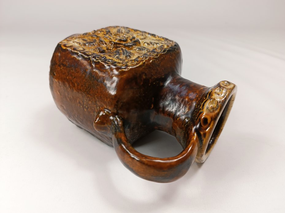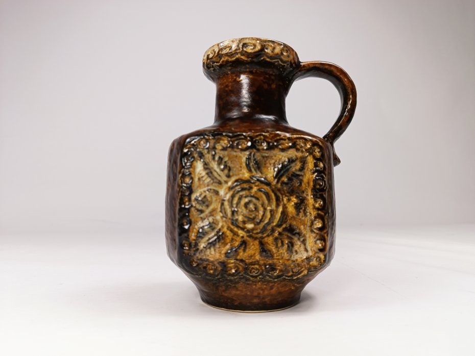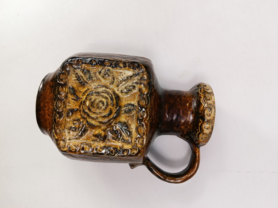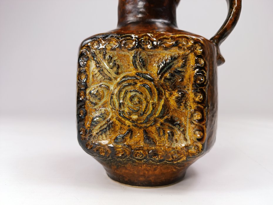 Ceramiczny wazon w odcieniach brązu Dümler & Breiden, z lat 70. Wazon wykonany z grubej ceramiki z motywem róży. Stan zachowania bardzo dobry, bez uszkodzeń. Wysokość 15 cm.