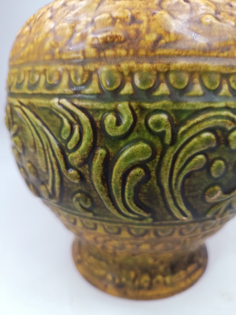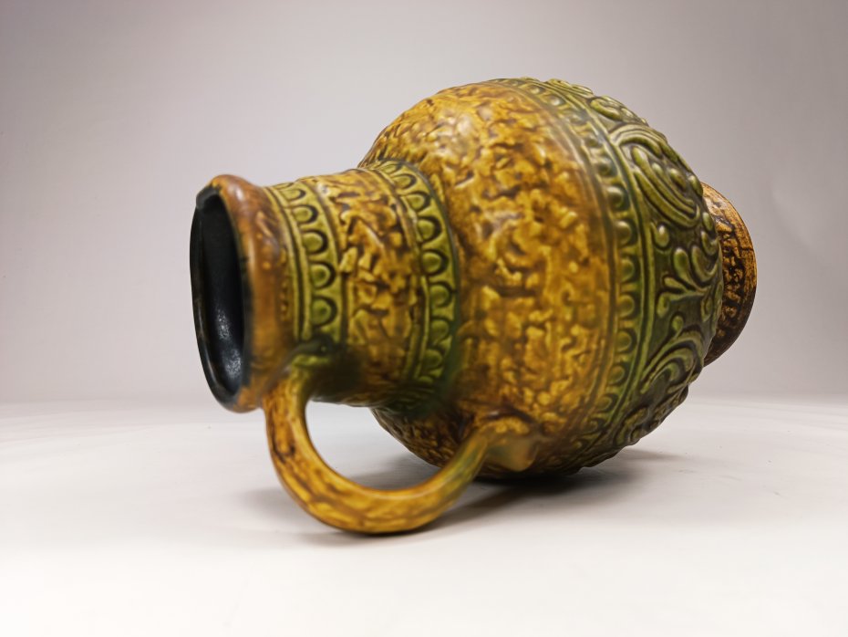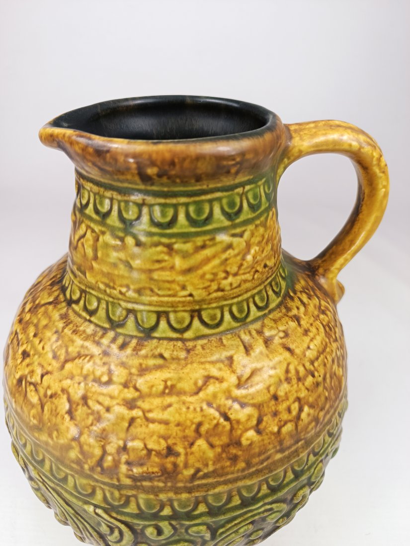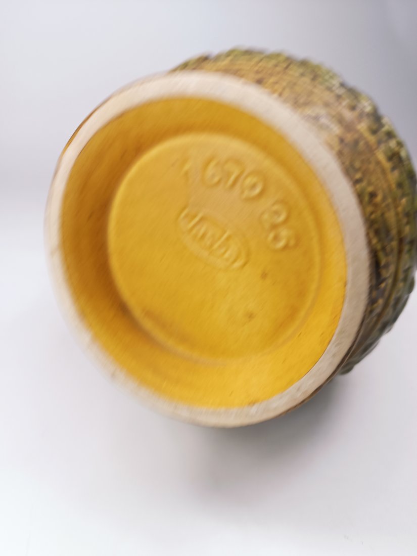Niemiecki, ceramiczny wazon Jasba z lat 70. Sygnowany 1670 25. Stan zachowania bardzo dobry, bez uszkodzeń. Wysokość 26 cm.