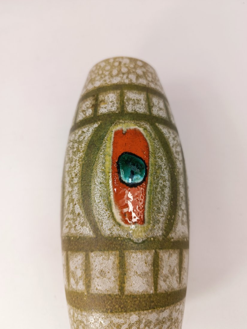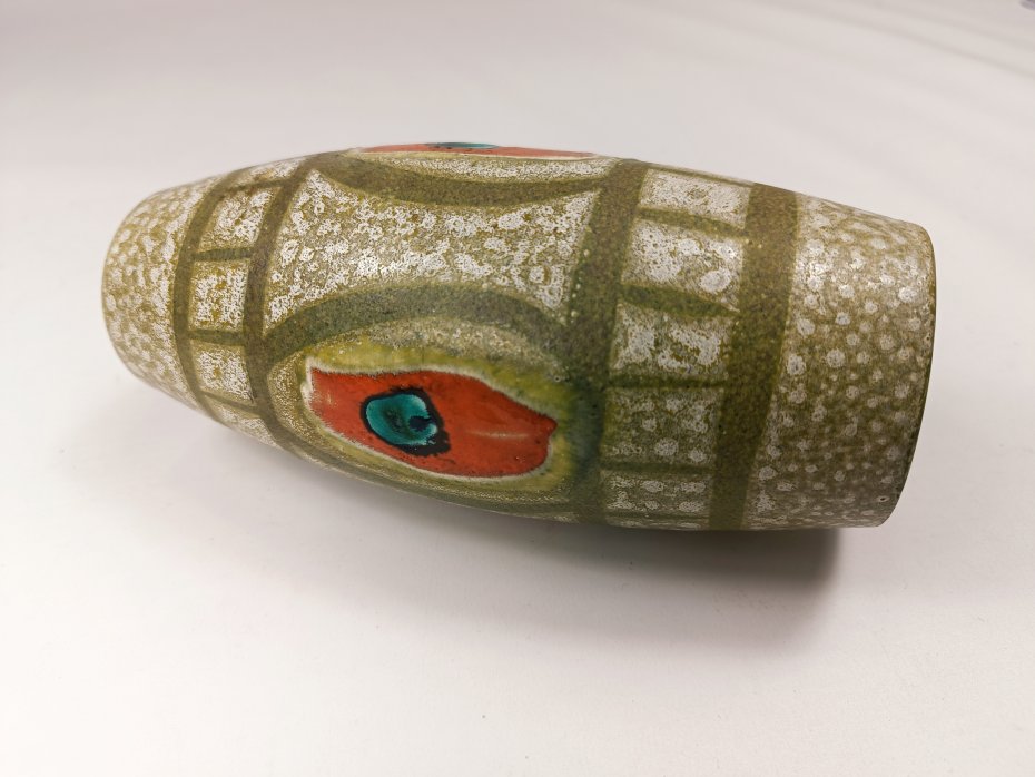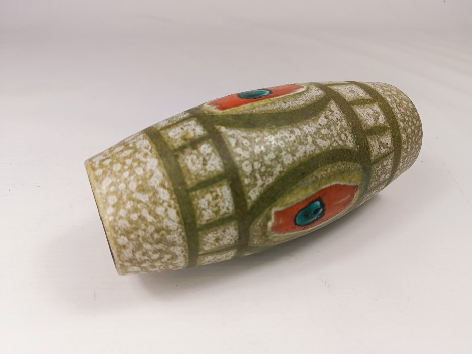 Niemiecki, ceramiczny wazon Scheurich. Szkliwiony na czerwonym zdobieniu. Wysokość 18 cm. Stan zachowaniem bardzo dobry, bez uszkodzeń