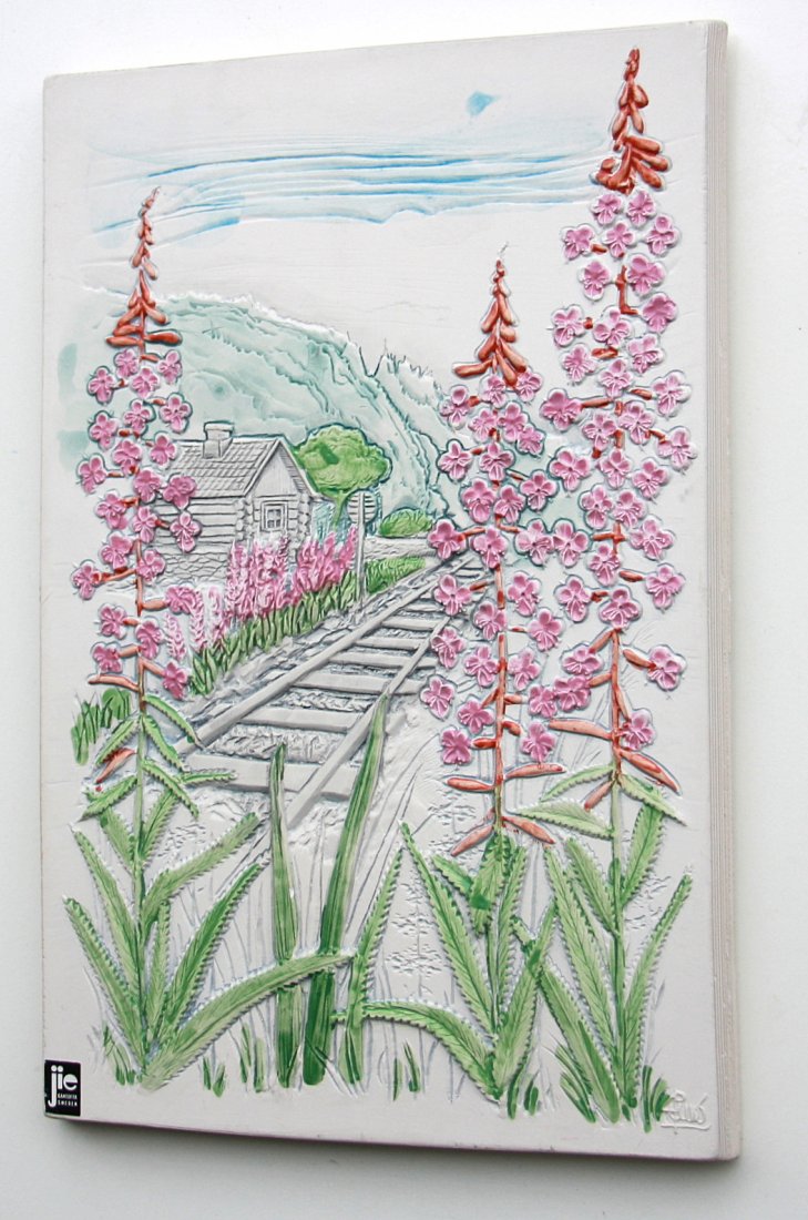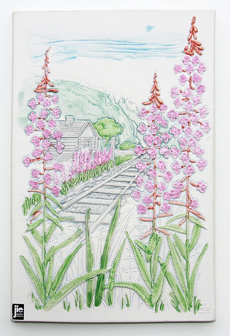 Jie Gantofta Sweden - kultowa ceramika szwedzka. Ceramiczna płytka ścienna, obrazek. Sygnowany o numerze 761. Design Aimo Nietosvuori.