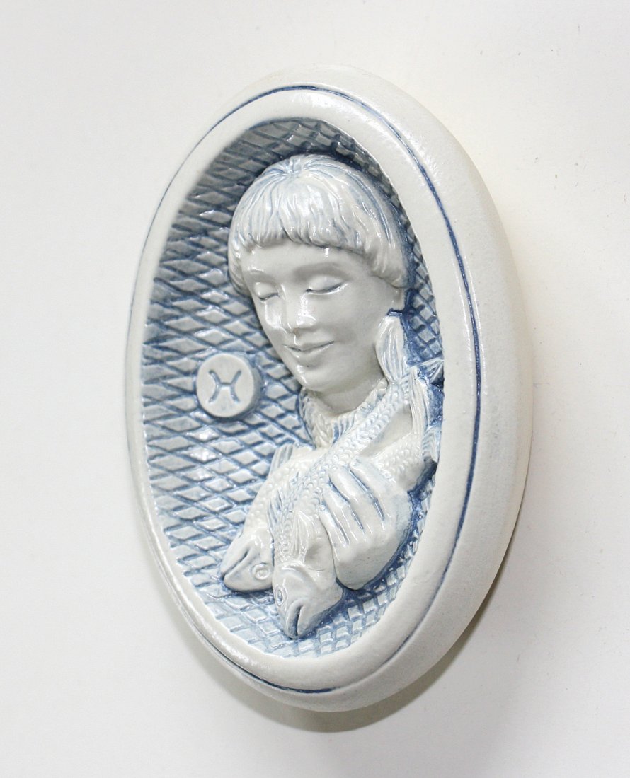 Jie Gantofta Sweden - kultowa ceramika szwedzka. Ceramiczna płytka ścienna, obrazek. Obrazek z motywem znaku zodiaku. Sygnowany o numerze 98-2 . Design Aimo Nietosvuori. Unikatowy.