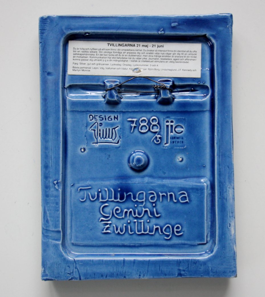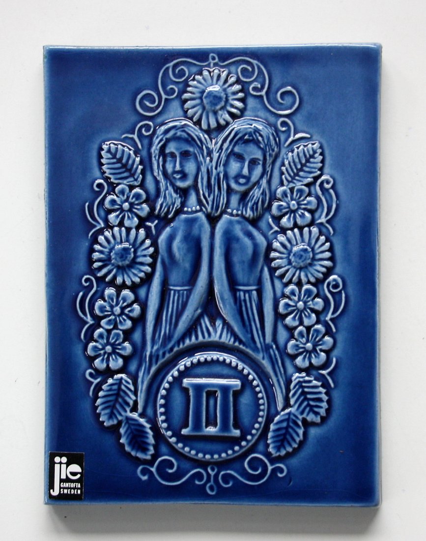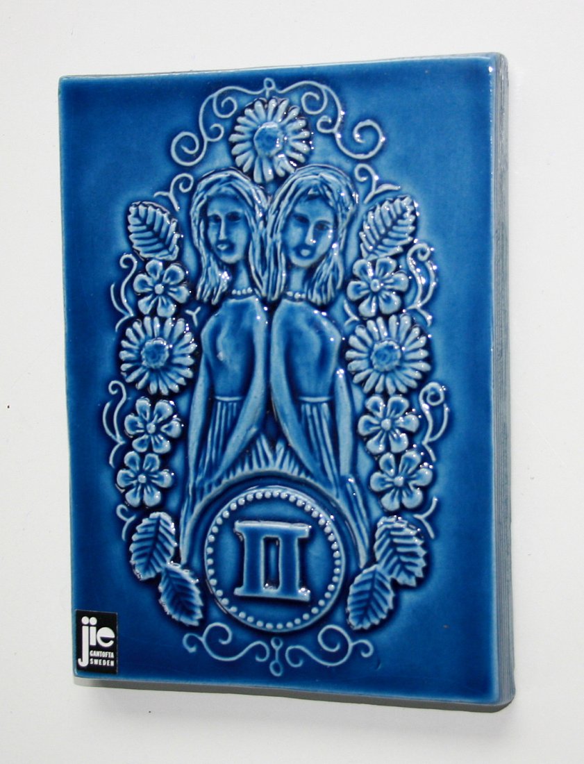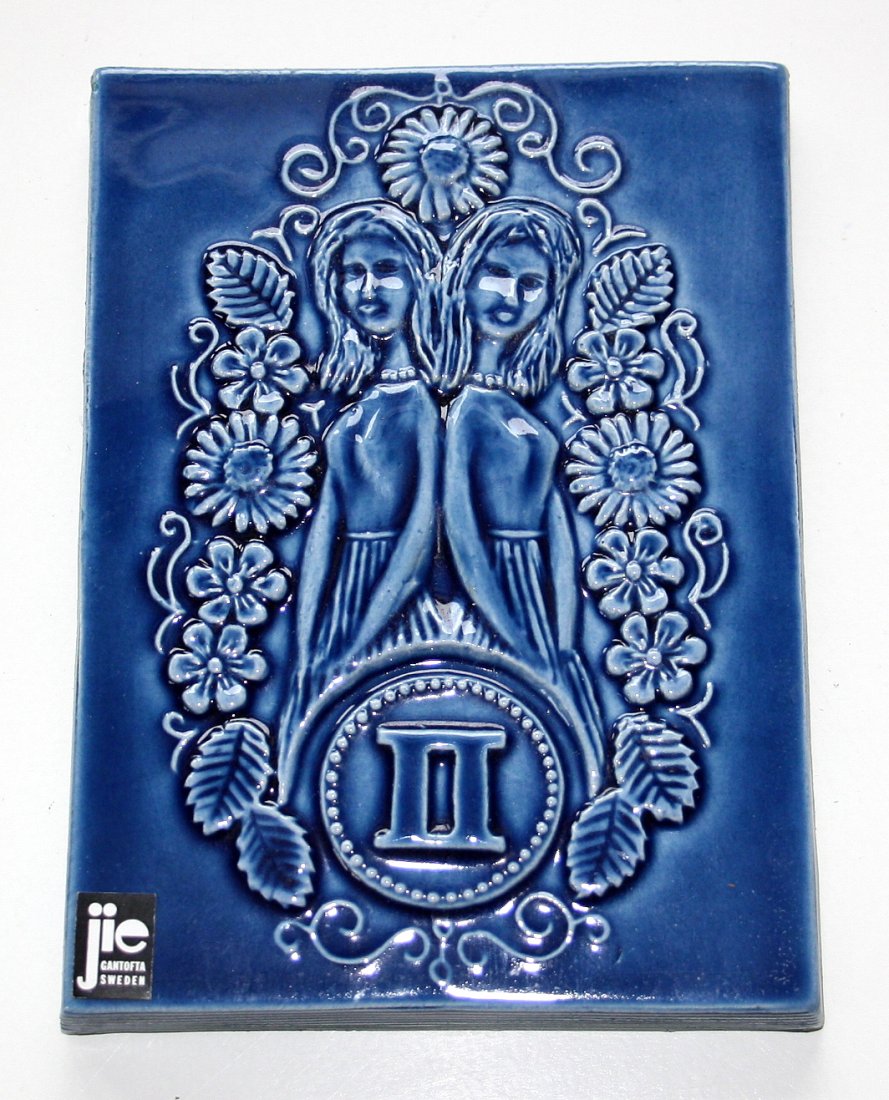 Jie Gantofta Sweden - kultowa ceramika szwedzka. Ceramiczna płytka ścienna, obrazek. Obrazek z motywem znaku zodiaku. Sygnowany o numerze 788/5. Design Aimo Nietosvuori.